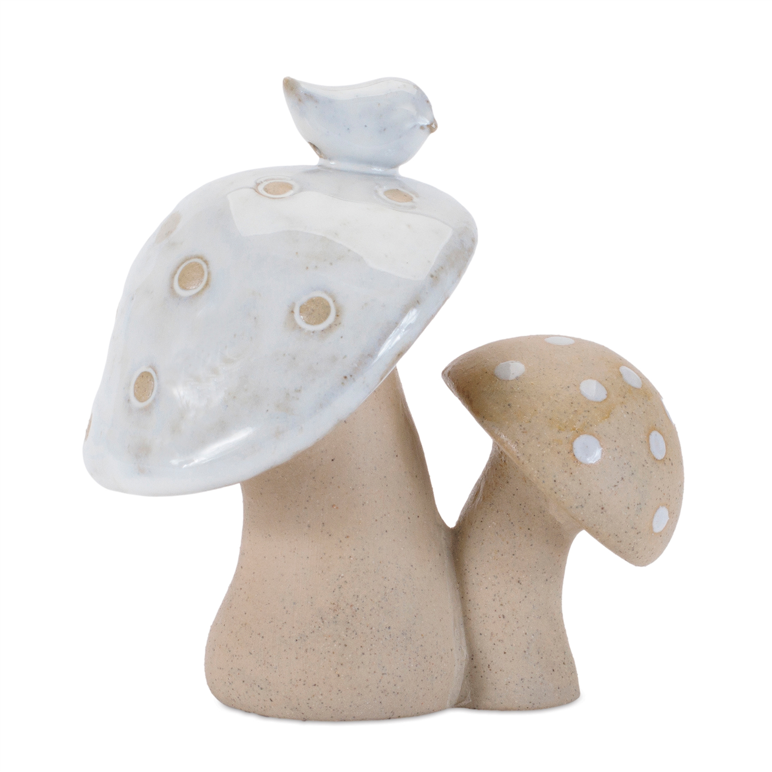 Double Mushroom w/Bird and Mushroom (Set of 6) 4.5”H Porcelain