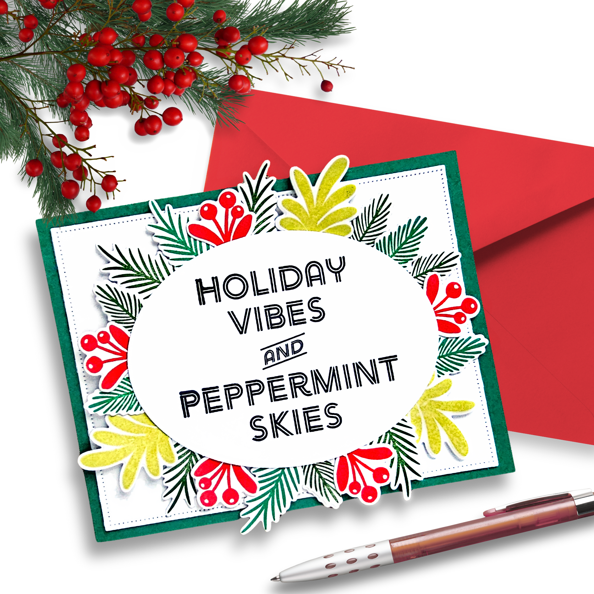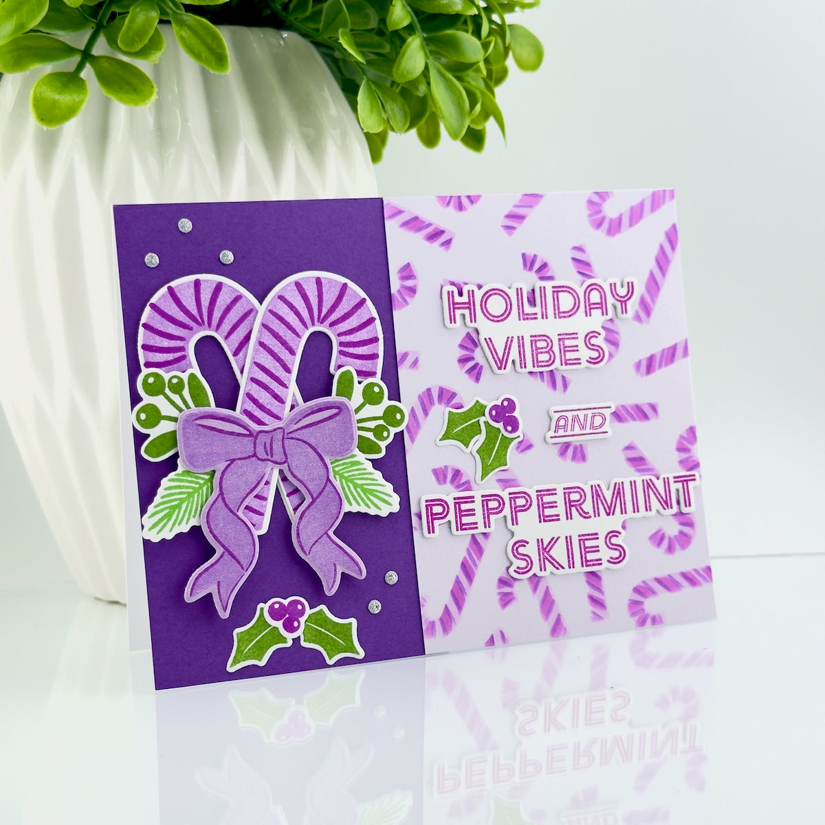 With sentiments like “Holiday Vibes and Peppermint Skies,” “Sweet but Twisted,” and “A Little Merri-Mint Never Hurt Nobody,” this set is ideal for creating witty cards, gift tags, and treat toppers. Also available with matching die cuts in the A Little Merri-Mint Stamp & Cut set.