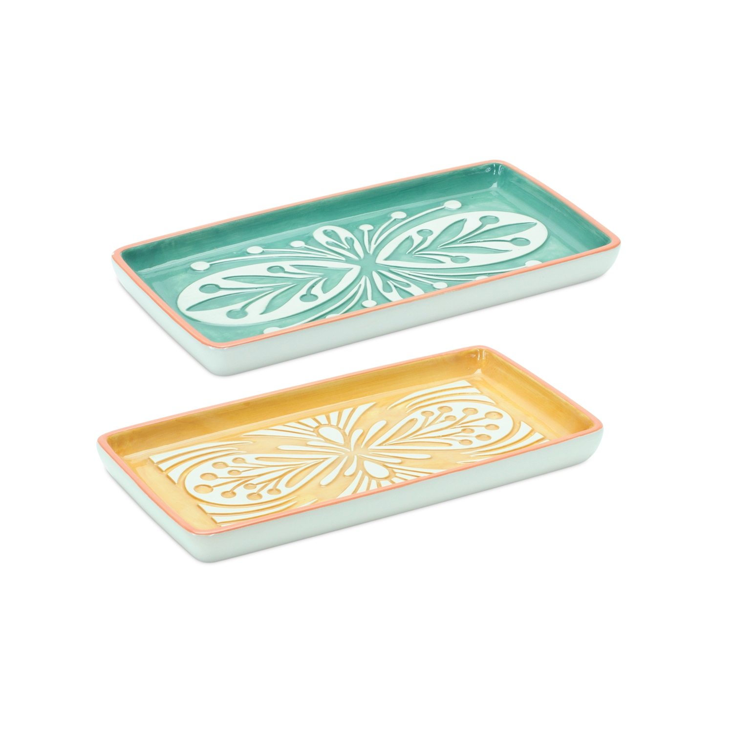 Add a vibrant touch to your home with this set of 6 Ornamental Ceramic Trays. Each tray features a unique abstract design in a fresh palette of green, yellow, and white—perfect for modern and eclectic decor styles. Whether used to showcase LED candles, faux florals, or small decorative items, these durable ceramic trays bring artistic flair and versatility to any tabletop or shelf.