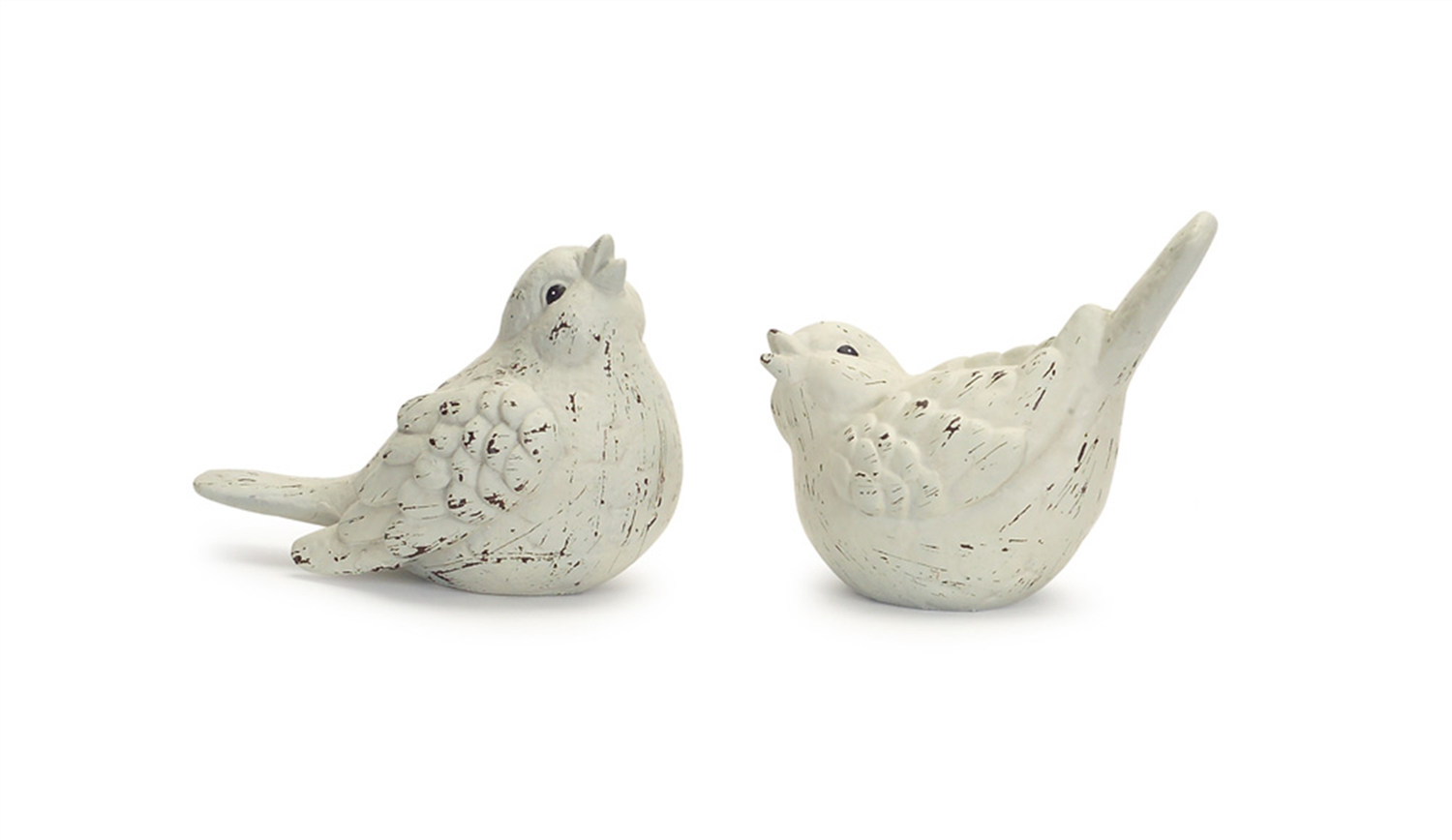 Bring the charm of nature indoors with this exquisite set of Ivory Terracotta Bird Figurines. Crafted with a weathered painted finish, these delicate yet durable pieces add a rustic elegance to your home decor. Whether displayed as a centerpiece or scattered throughout your space, this collection of birds enhances your springtime ambiance with warmth and character. Perfect for both indoor and covered outdoor spaces, these timeless accents will complement any home style. Sold in a set of four pieces with two assorted designs to create a meaningful display in your home.