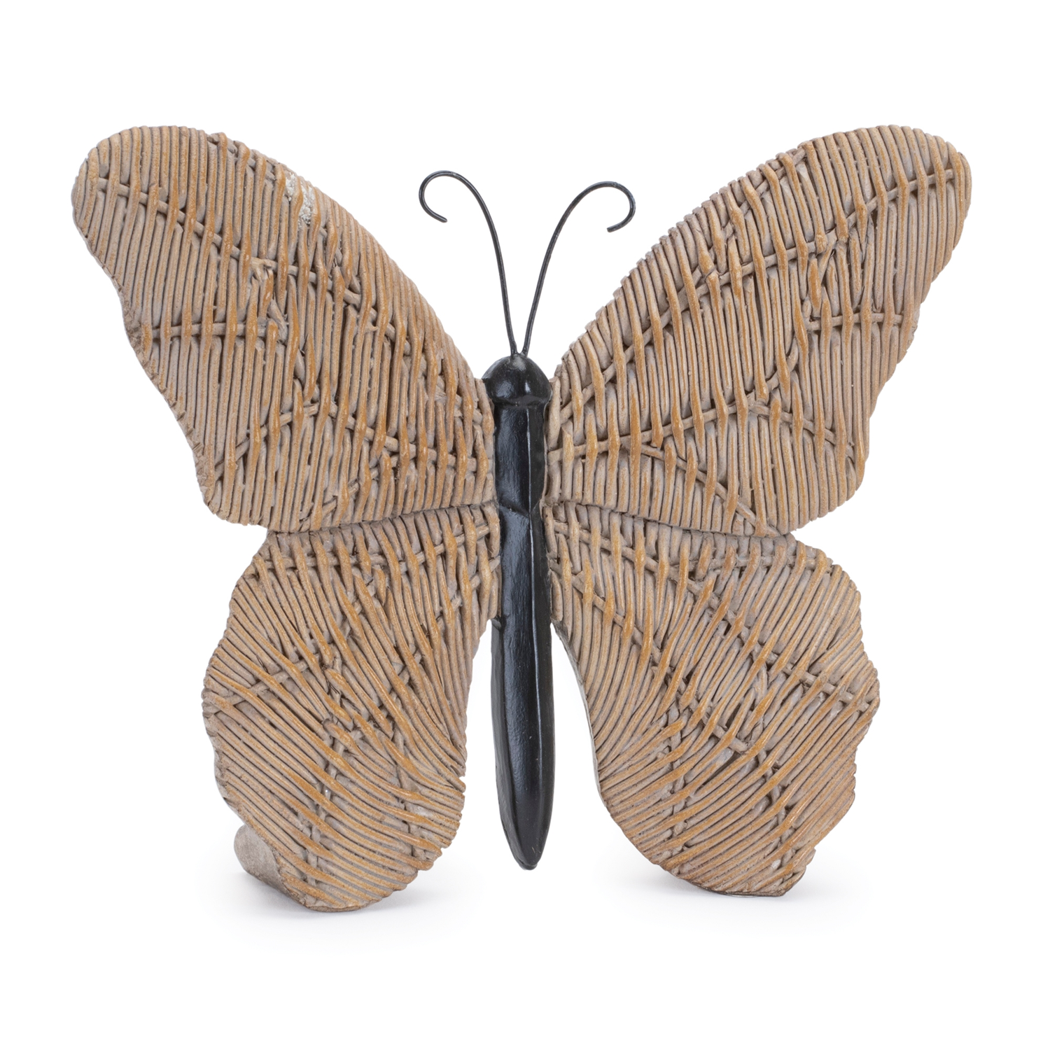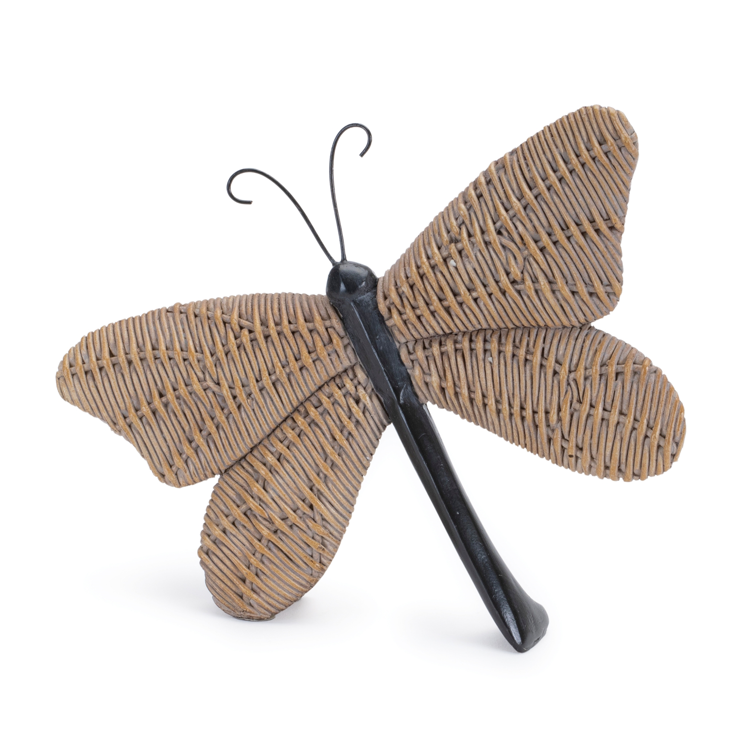 Bring the beauty of nature into your home with this Wicker Design Butterfly and Dragonfly Shelf Sitter Set. Featuring meticulously crafted pieces with charming designs, these sitters are the perfect way to add a touch of whimsy to your home. Designed for a variety of interior styles, from mid-century modern to farmhouse or boho, this set blends warm brown tones with intricate woven wicker wings and elegant metal accents. Crafted from durable polyresin and metal, these pieces promise to endure through seasons of enjoyment. Display them on your bookshelf, coffee table, or mantel, or gift them to a nature lover to spread the beauty of the outdoors. Sold in a set of four pieces with two assorted designs to create a meaningful display in your home.
