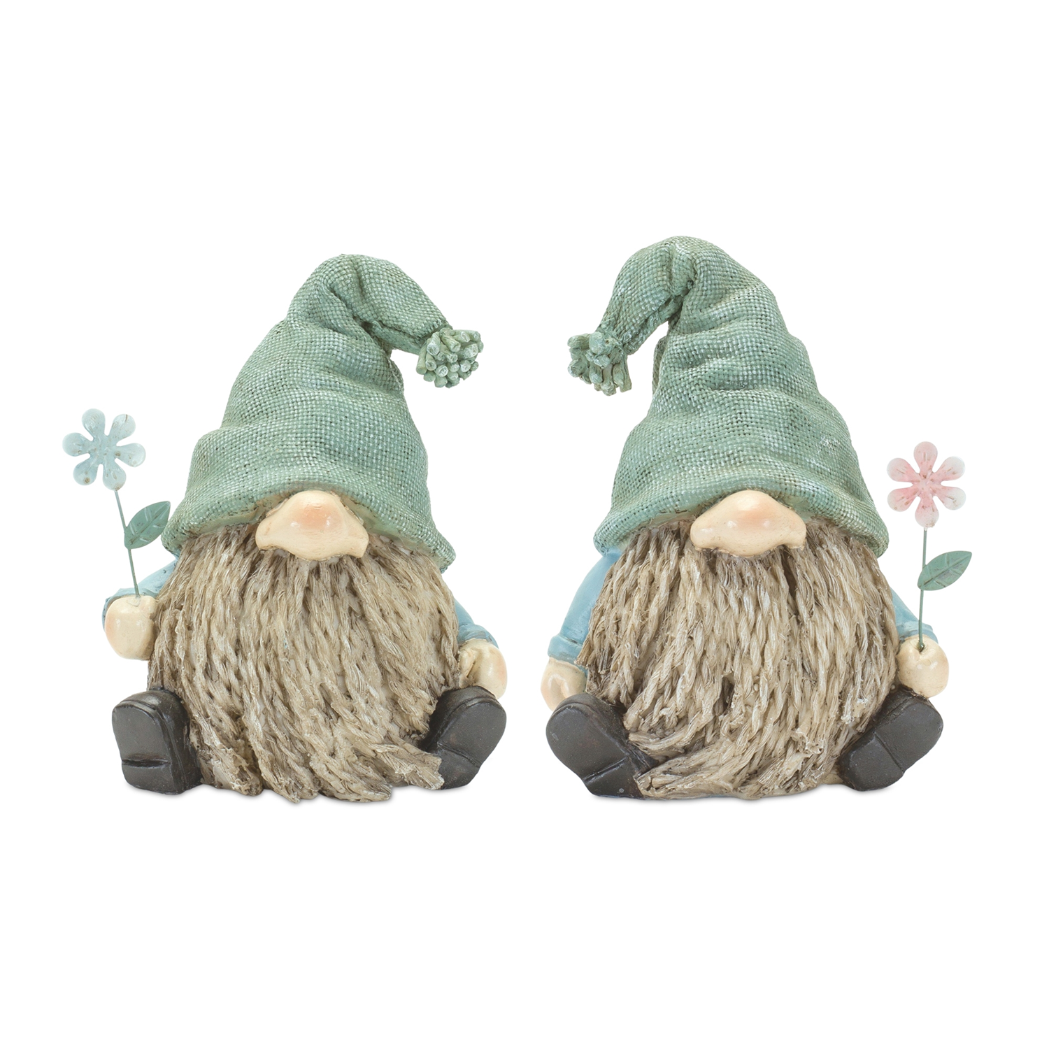 Add a playful charm to your home or garden with this delightful set of Whimsical Garden Gnome Figurines. Crafted from durable polyresin with stone powder, each gnome features cool blue and green tones, earthy brown details, and a cheerful flower stem accent for a spring-inspired look. With two assorted designs in the set, these adorable characters bring a storybook feel to your seasonal decor. Perfect for tabletops, shelves, or tucked among your potted plants, these gnomes are a charming way to welcome spring—indoors or in covered outdoor spaces. Sold in a set of four pieces with two assorted designs to create a meaningful display in your home.