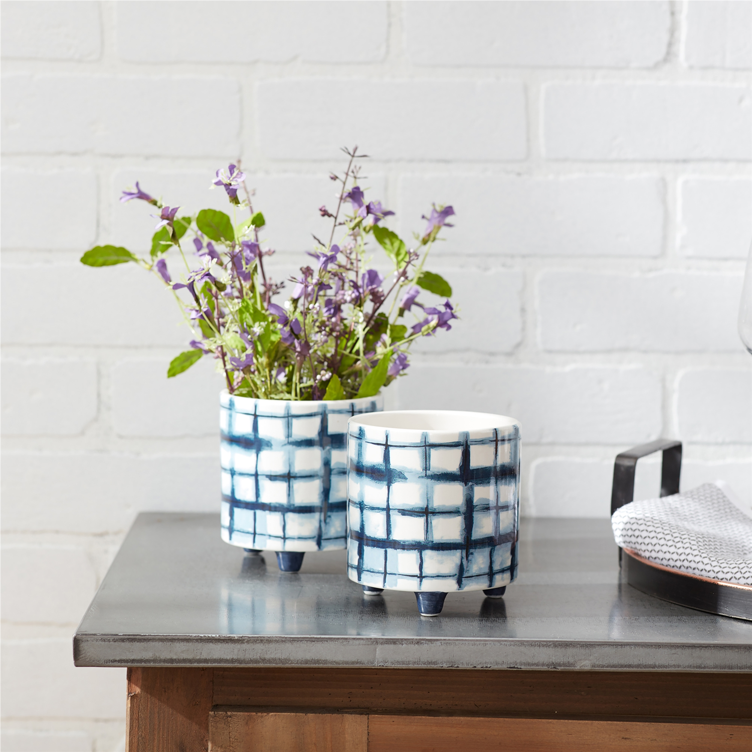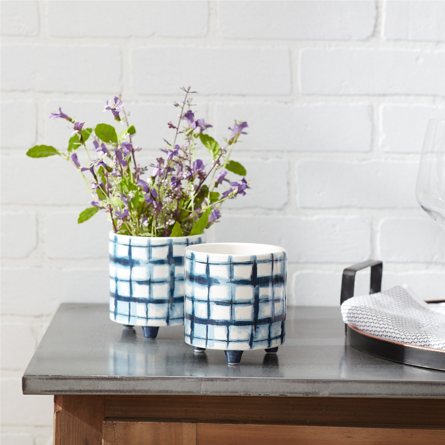 Add a touch of elegance to your home or garden with this chic Tie-Dye Design Footed Planter Set. Crafted from high-quality dolomite, these planters feature unique abstract patterns in soothing blue and white hues, making them a perfect complement to any indoor or outdoor space. Whether you're showcasing faux plants or small succulents, these footed pots bring a modern flair while providing durability with their glaze finish. Ideal for both contemporary and classic decor styles, this pair ensures your plants stand out in style season after season. Sold in a set of two assorted designs to create a balanced and memorable display in your home or patio setting.