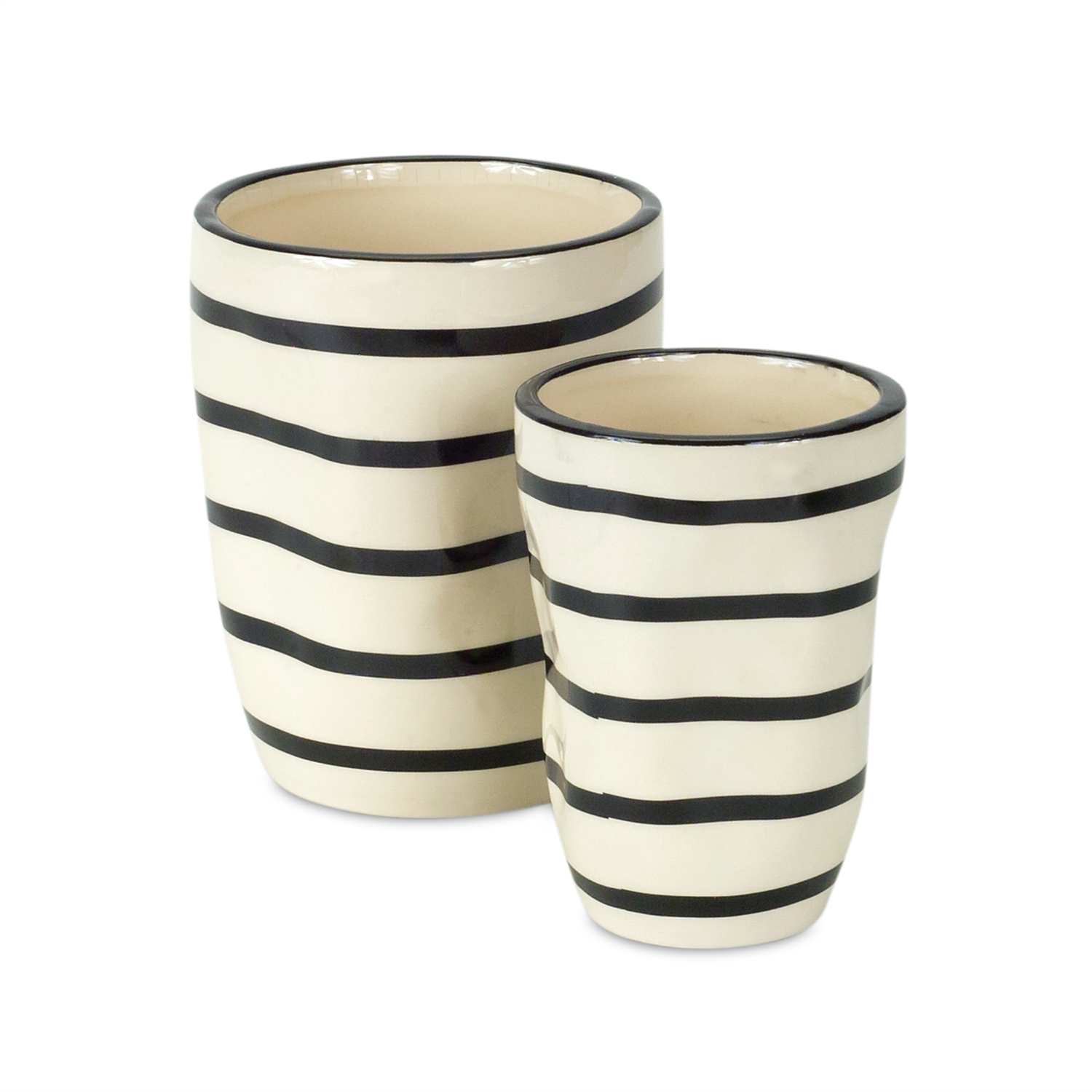 Elevate your indoor plant display with this chic Set of Wavy Patterned Planters. Crafted from high-quality dolomite, each pot features a striking black and beige palette with a modern glazed finish. Whether displayed on a windowsill, shelf, or tabletop, these planters add a sophisticated touch to your space. Sold in a set of six pieces with two assorted sizes to make a statement in your home or garden setting.