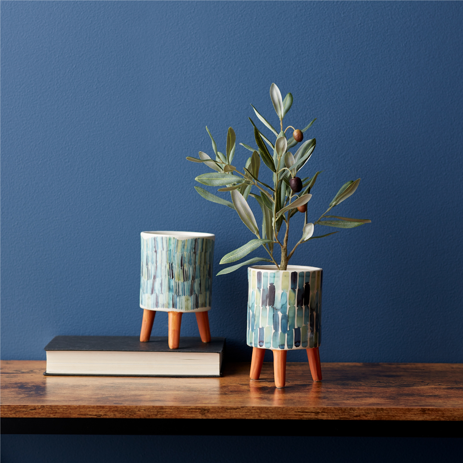 Add a touch of artistic elegance to your space with this chic set of Watercolor Planters. Featuring abstract designs in soft hues of blue, brown, and white, each planter sits on warm terra cotta legs for a unique and stylish look. Crafted from durable dolomite with a glazed finish, these mini pots are perfect for displaying faux plants, succulents, or decorative accents. Whether inside your home or in a outdoor space, these planters are designed to elevate your decor with a modern flair. Sold in a set of two assorted designs to create a balanced and memorable display in your home or patio setting.