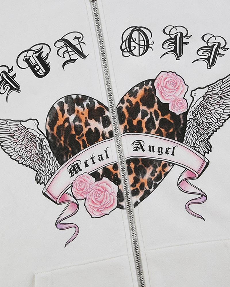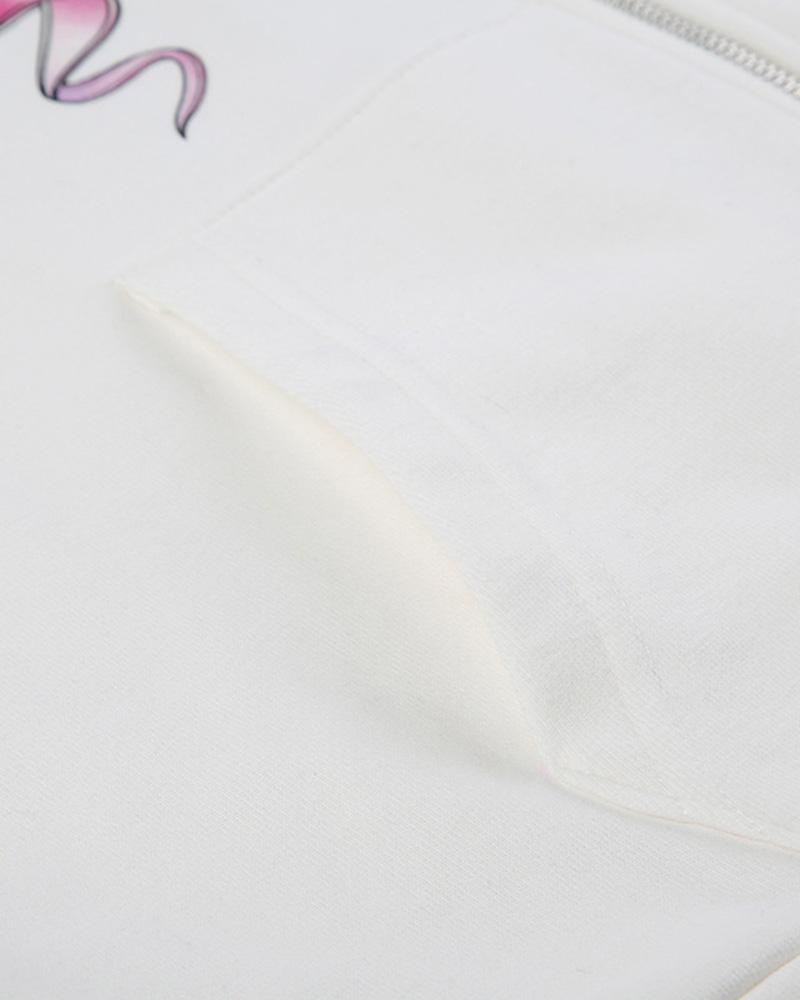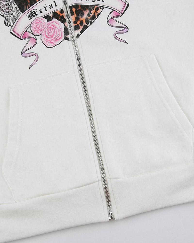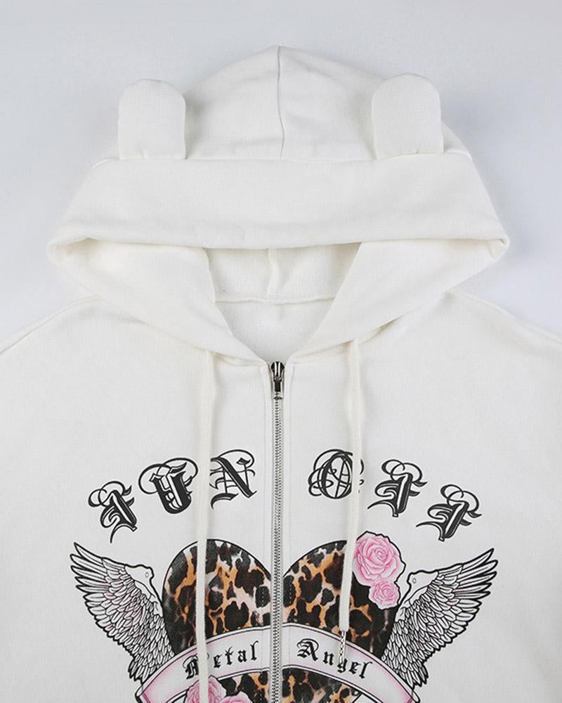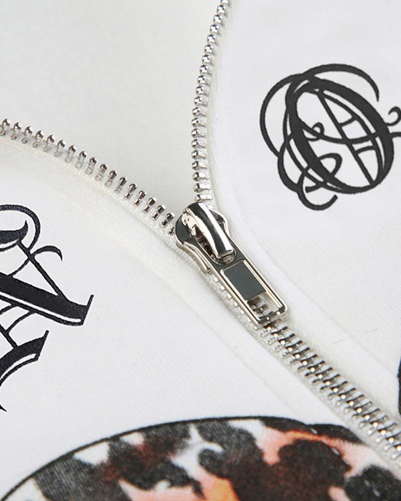 Details: Zip hoodie top with graphical printTop Length: NormalSleeve Length: Long SleevesMaterials: 95% Polyester + 5% Spandex
