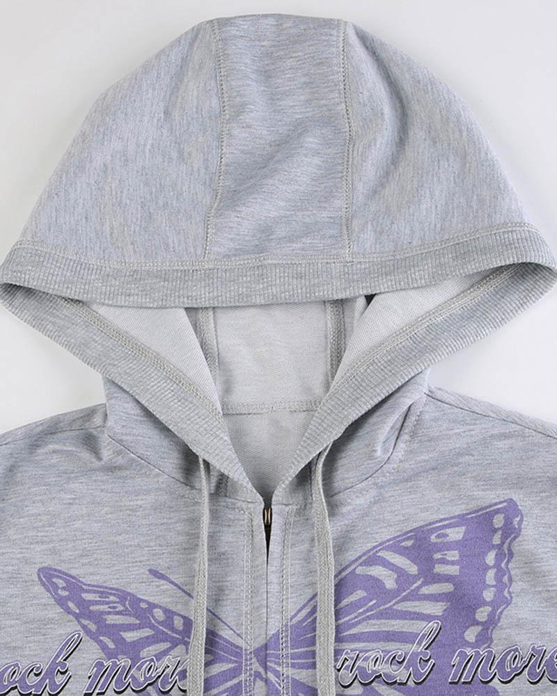 Details: Zip hoodie with butterfly graphical print design