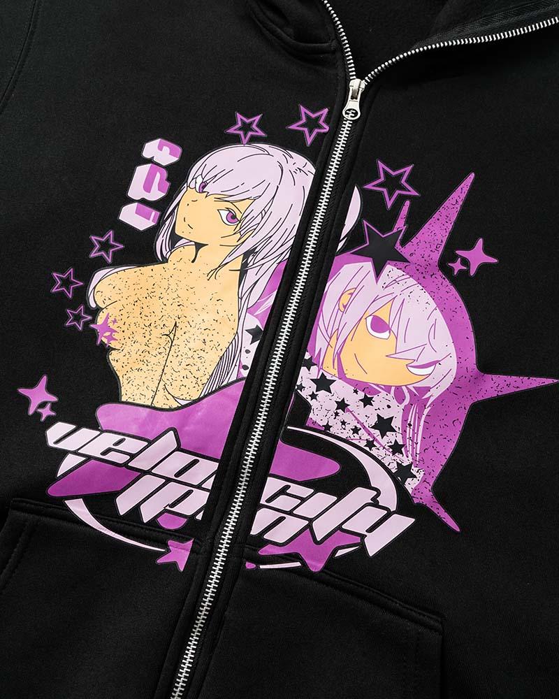 Details: Zip up hoodie with cartoon print design