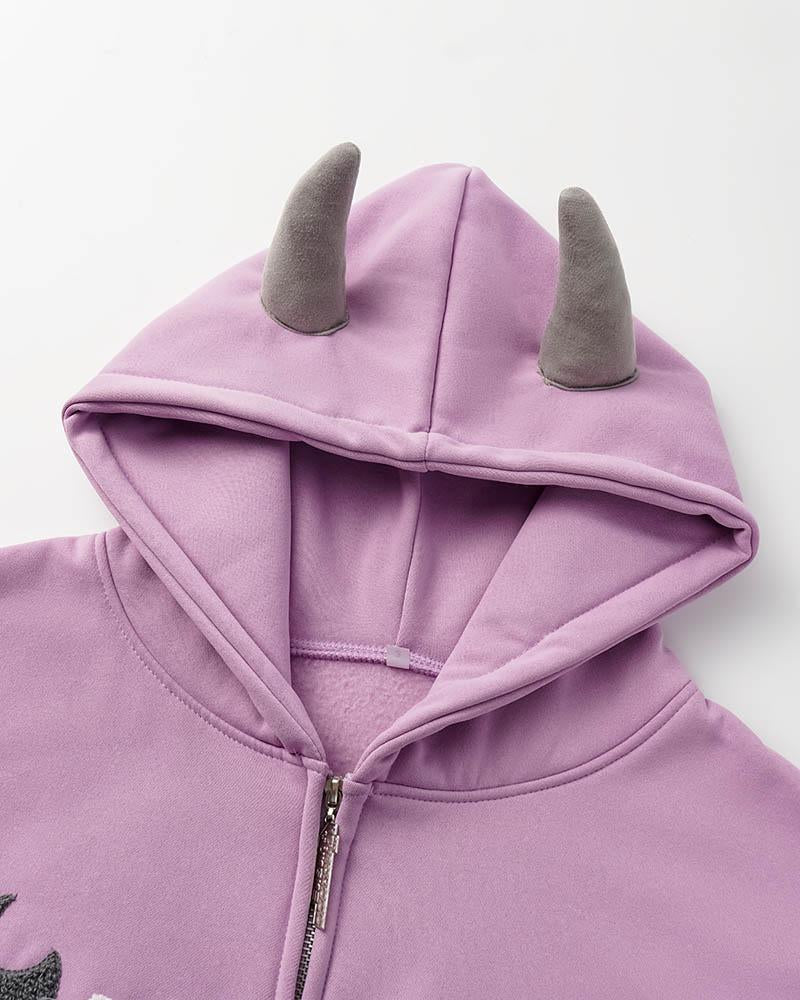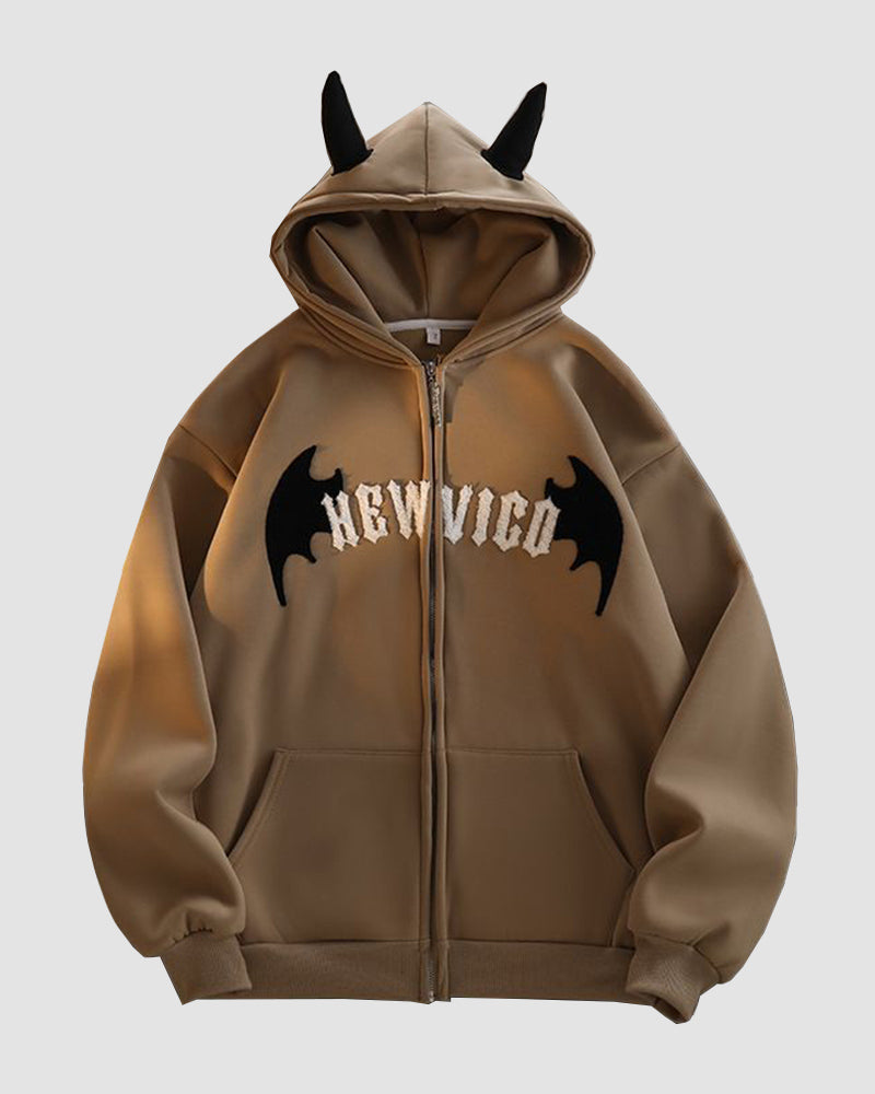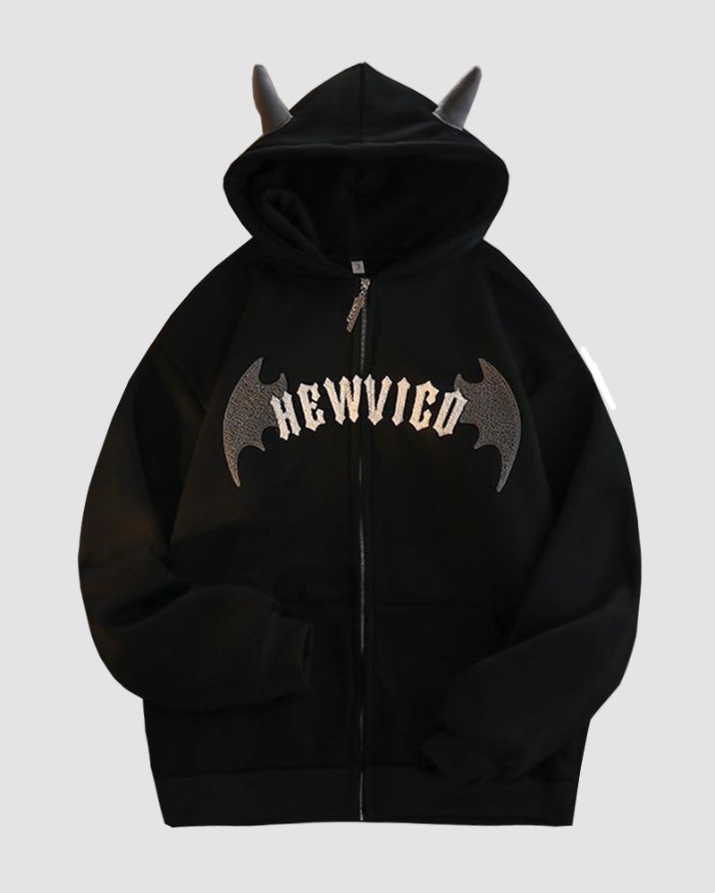 Details: Long-sleeve hoodie top with devil batwing design