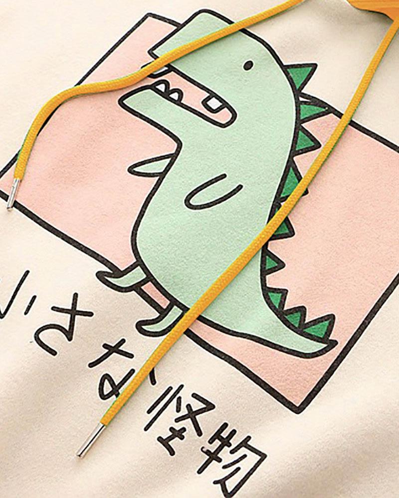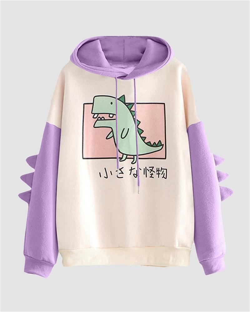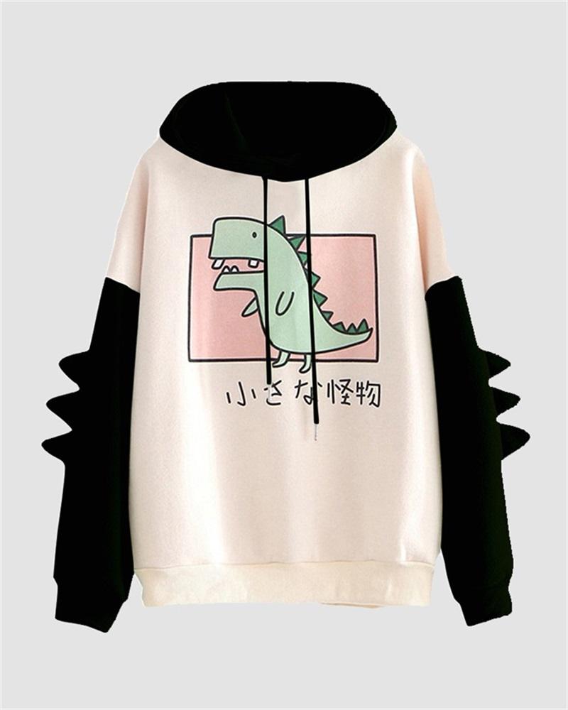 Details: Long-sleeve graphical hoodie with dinosaur designTop Length: NormalSleeve Length: Long SleevesMaterials: 95% Polyester + 5% Spandex