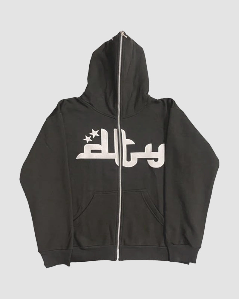 Details: Long-sleeve hoodie with front letter print design