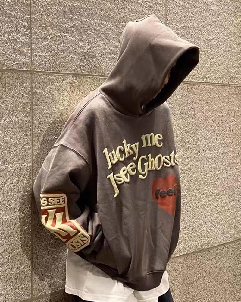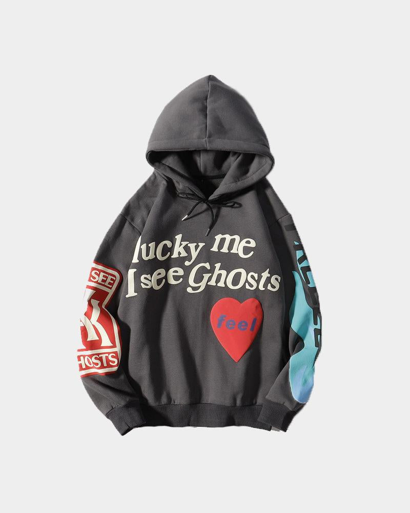 Details: Zip hoodie with Lucky Me I See Ghosts letter design