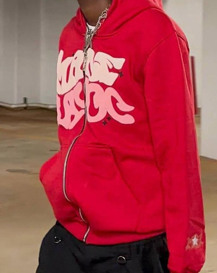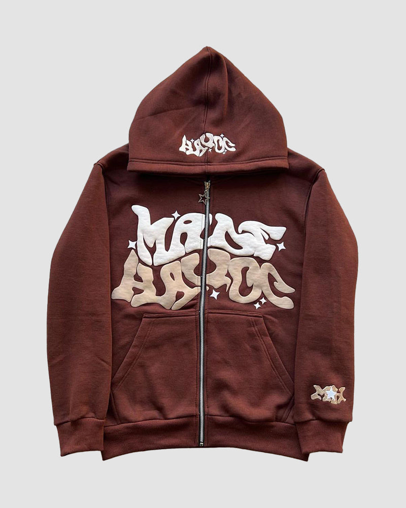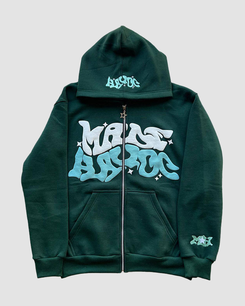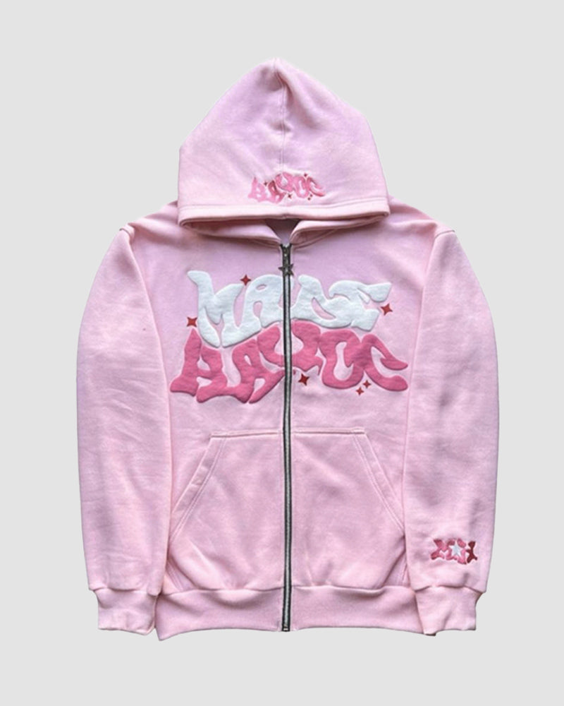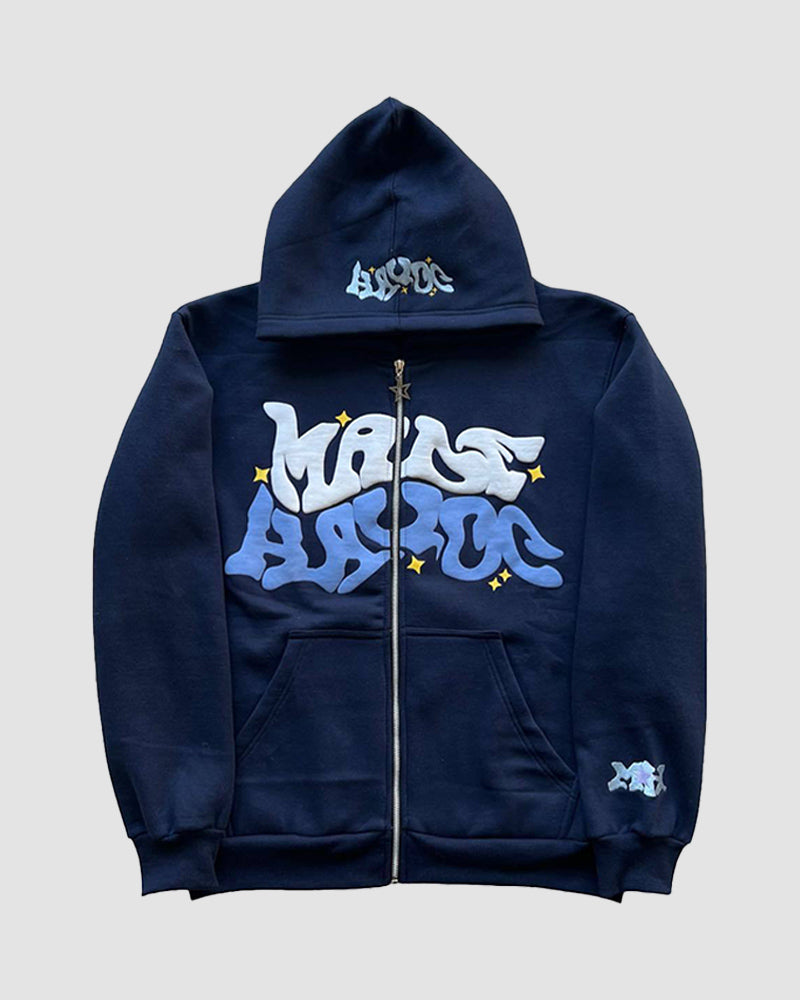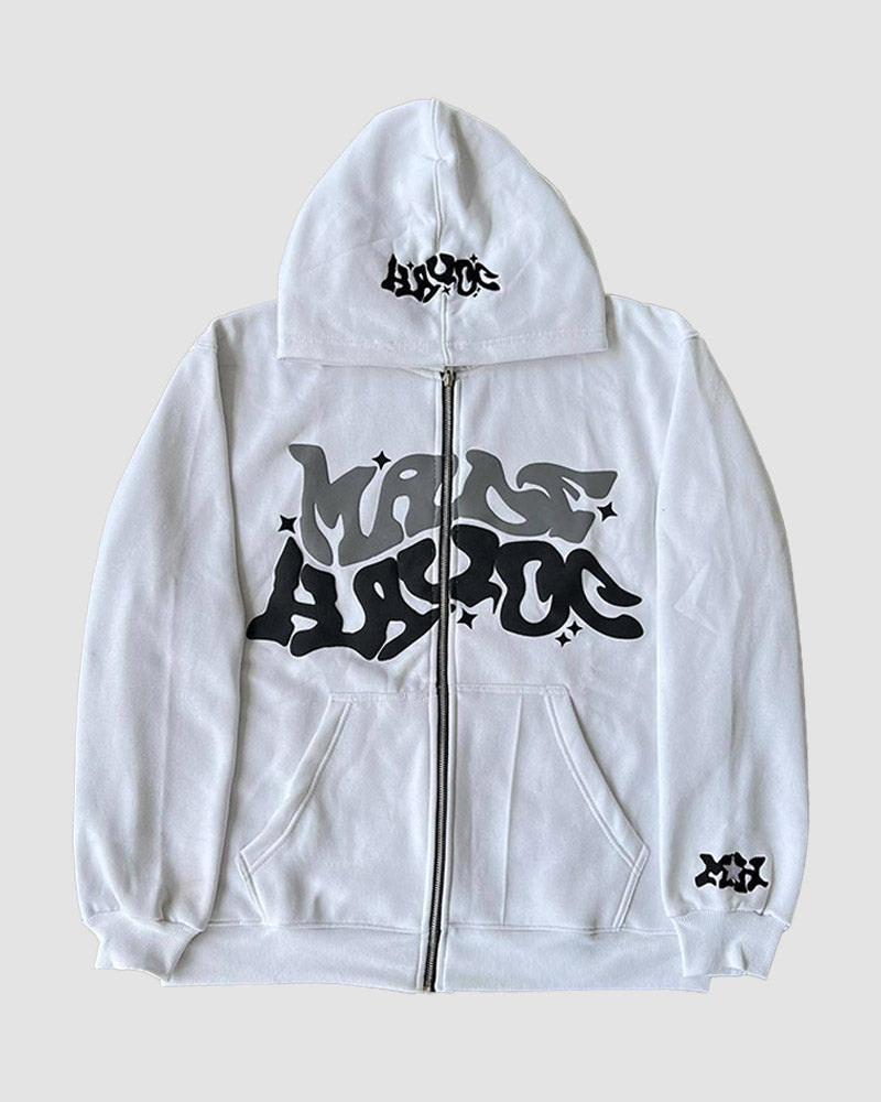 Details: Zip-up hoodie with Made Havoc graffitti graphical design