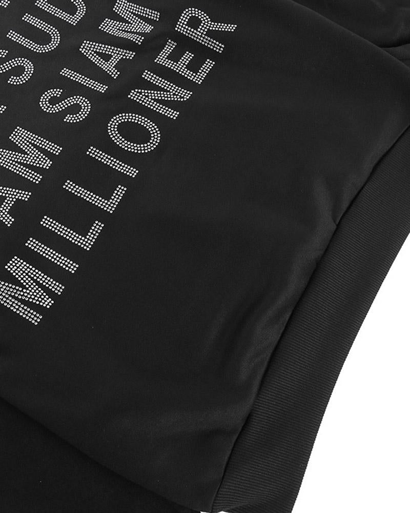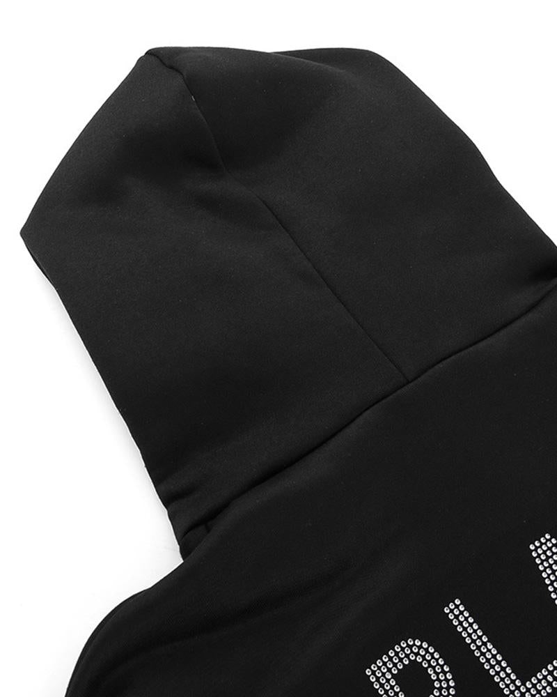 Details: Long-sleeve oversized hoodie with rhinestone letter print design