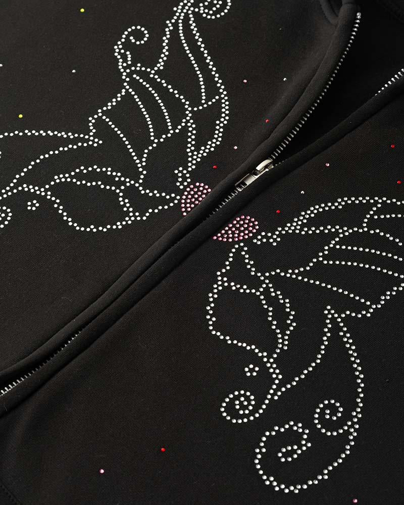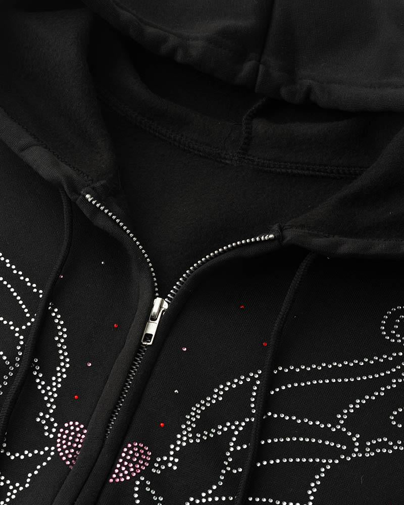Details: Long-sleeve hoodie with diamante butterfly design