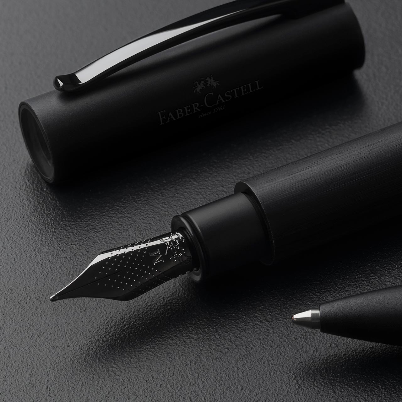 Make a statement with this luxuriously sleek yet unobtrusive Faber-Castell ballpoint pen designed to inspire the mind and please the hand. The All-Black Ballpoint is a study in black-on-black elegance, sporting a brushed black resin barrel and a cap and grip that are PVD-coated in black stainless steel. Made in Germany.