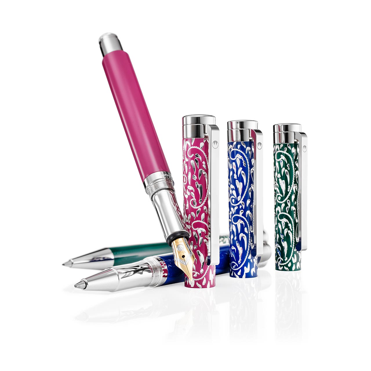 The Xetra Vienna Pen perfectly exemplifies exceptional Waldmann craftsmanship, from the hand-engraved Viennese pattern on the cap to the brilliantly lacquered and polished solid sterling silver barrel to the trademark solid spring-supported clip. All Waldmann writing instruments are designed and manufactured in Germany. Rollerball or Ballpoint.