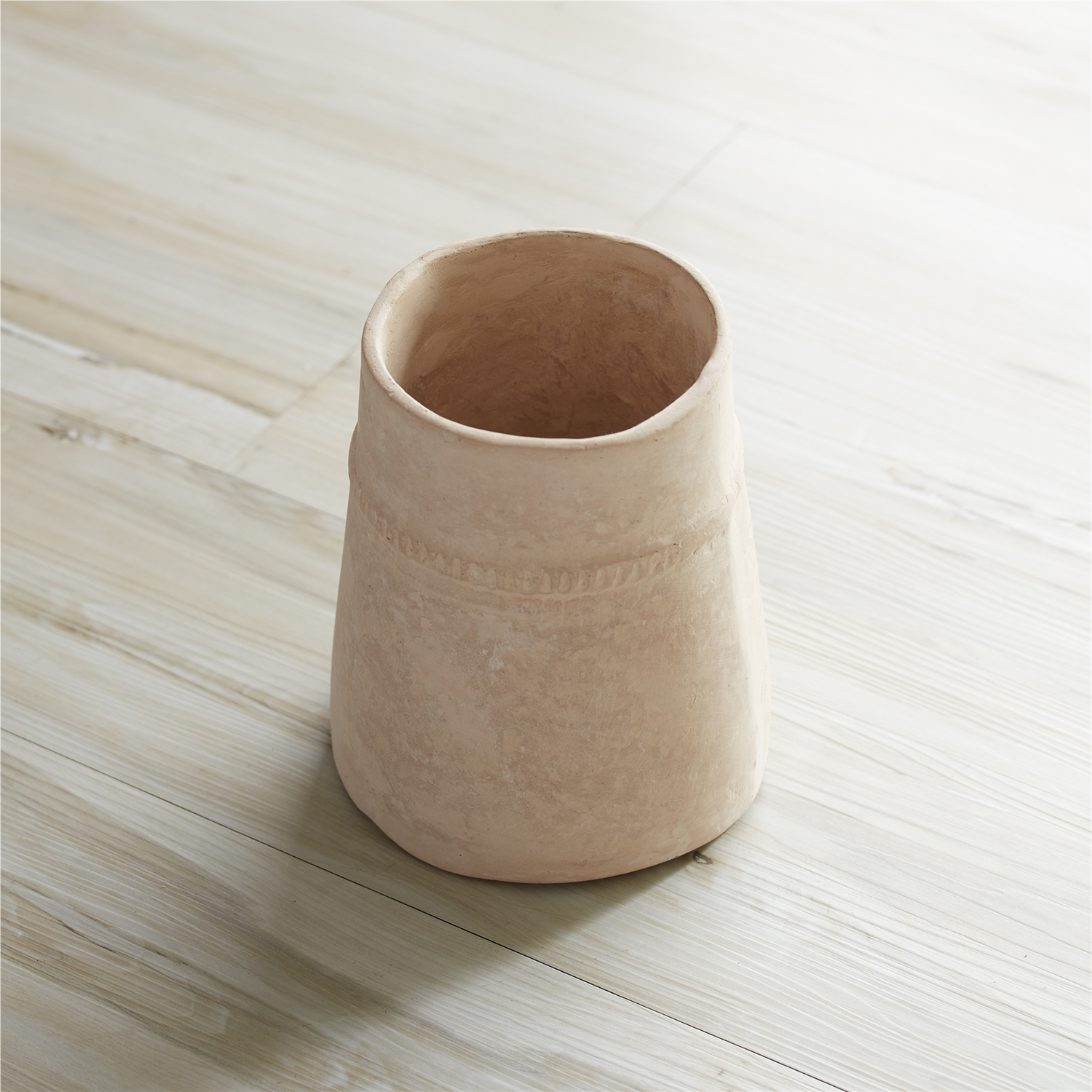 Add rustic charm to your space with the eco-friendly Recycled Paper Chalk Vase. Standing at 6.5" tall, this versatile vase features a warm beige tone and a distressed finish that perfectly complements country cottage and farmhouse aesthetics. Made from a sustainable blend of recycled paper and chalk powder, it's not only beautiful but also durable for long-lasting use. Whether filled with dried florals or fresh garden blooms, this vase makes a stunning centerpiece or thoughtful gift. Embrace sustainability without sacrificing style in your home decor!